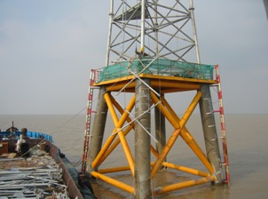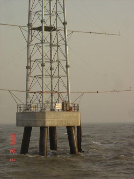 我國海上風(fēng)電開發(fā)剛剛起步,在風(fēng)資源評估、海上風(fēng)電場的設(shè)計理論和方法、海上風(fēng)電場的建設(shè)與運(yùn)行等方面均屬空白。開發(fā)海上風(fēng)電首先要對風(fēng)資源進(jìn)行評估,獲取海上風(fēng)資源數(shù)據(jù)的最直接方法就是在海上建立測風(fēng)塔。目前我國已建成的海上測風(fēng)塔較少,海上測風(fēng)塔建設(shè)可供借鑒參考的資料很少,海上氣象條件惡劣,施工周期長、難度大。