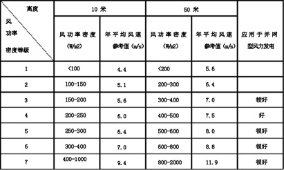 表 2:風(fēng)能區(qū)域等級(jí)劃分表