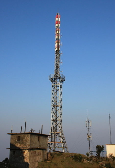 廣電塔上設(shè)置用于工藝、瞭望等用途的平臺(tái)。其層次、數(shù)目與布置高度需根據(jù)使用要求確定。平臺(tái)形狀視塔身截面而定,平臺(tái)結(jié)構(gòu)的構(gòu)件一般都采用角鋼、槽鋼、工字鋼等型鋼制成,為了便于高空安裝,構(gòu)件之間先用焊接連接成吊裝單元,各單元之間用螺栓連接。