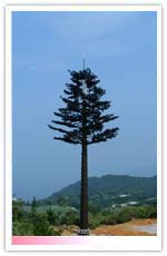 優(yōu)點(diǎn):保持了原有單管塔的所有優(yōu)點(diǎn),在其外形上作了重大的突破、改進(jìn),以自然生長(zhǎng)的松樹(shù),樟樹(shù)等為仿真的造型樣本,設(shè)計(jì)素描圖和電腦效果圖,制訂雕塑和噴涂工藝程序,對(duì)單管塔仿真?zhèn)窝b,使人們察覺(jué)不到塔的存在,把它融入了周?chē)淖匀画h(huán)境中。