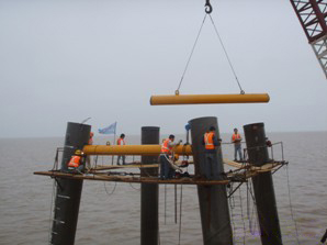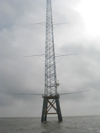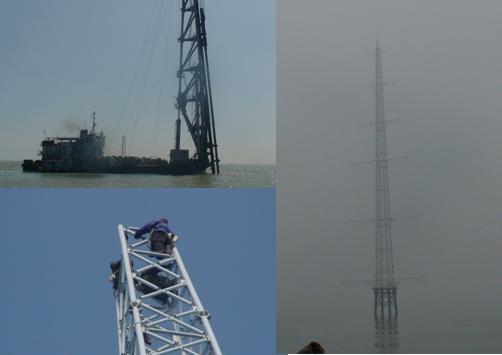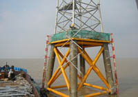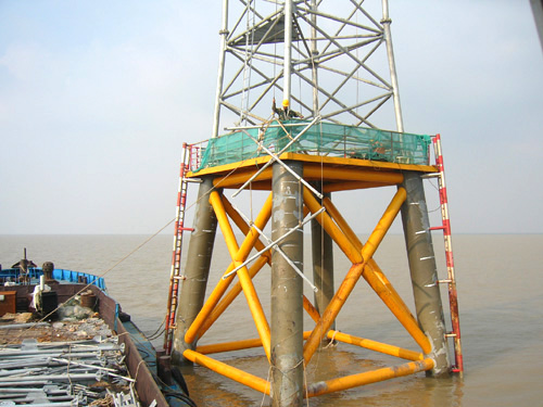 我國海上風(fēng)電開發(fā)剛剛起步,在風(fēng)資源評估、海上風(fēng)電場的設(shè)計理論和方法、海上風(fēng)電場的建設(shè)與運(yùn)行等方面均屬空白。開發(fā)海上風(fēng)電首先要對風(fēng)資源進(jìn)行評估,獲取海上風(fēng)資源數(shù)據(jù)的最直接方法就是在海上建立測風(fēng)塔。目前我國已建成的海上測風(fēng)塔較少,海上測風(fēng)塔建設(shè)可供借鑒參考的資料很少,海上氣象條件惡劣,施工周期長、難度大。