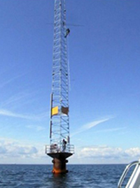 開發(fā)海上風(fēng)能首先需要弄清近海區(qū)域風(fēng)的變化規(guī)律及特征。近岸陸地氣象站所測風(fēng)速由于受到地面粗糙度及大氣穩(wěn)定度等因素的影響,與海上風(fēng)速有一定差異,不能直接用來代表海上風(fēng)況。獲得海上風(fēng)資源數(shù)據(jù)的最直接方法就是在海上建立測風(fēng)塔。