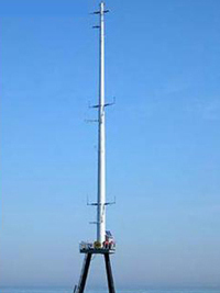 海上測風(fēng)塔根據(jù)其暴露條件可分為大氣區(qū)、浪濺區(qū)、潮差區(qū)、海水全浸區(qū)和海泥區(qū)等腐蝕區(qū)帶,其中浪濺區(qū)和潮差區(qū)腐蝕最嚴(yán)重,其次是海泥交界處下方區(qū)域。不同的環(huán)境條件和暴露條件有不同的腐蝕規(guī)律,一般情況下應(yīng)采取相應(yīng)的防腐、保護(hù)技術(shù)措施。常用的防腐方法有熱浸鋅法、