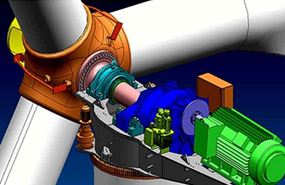 31.4 轉(zhuǎn))。利用可變速操作,葉輪的空氣動力效率可以得到改善,從而提取更多的能量,而且在弱風(fēng)情況下噪音更低。因此,變速的風(fēng)電機(jī)設(shè)計(jì)比起定速風(fēng)電機(jī),越來越受歡迎。機(jī)艙上安裝的感測器探測風(fēng)向,透過轉(zhuǎn)向機(jī)械裝置令機(jī)艙和葉輪自動轉(zhuǎn)向,面向來風(fēng)。葉輪的旋轉(zhuǎn)運(yùn)動通過齒輪變速箱傳送到機(jī)艙內(nèi)的發(fā)電機(jī)(如果沒有齒輪變速箱則直接傳送到發(fā)電機(jī))。在風(fēng)電工業(yè)中,配有變速箱的風(fēng)力發(fā)電機(jī)是很普遍的。不過,為風(fēng)電機(jī)而設(shè)計(jì)的多極直接驅(qū)動式發(fā)電機(jī),也有顯著的發(fā)展。設(shè)於塔底的變壓器(或者有些設(shè)於機(jī)艙內(nèi))可提升發(fā)電機(jī)的電壓到配電網(wǎng)電壓(香港的情況為